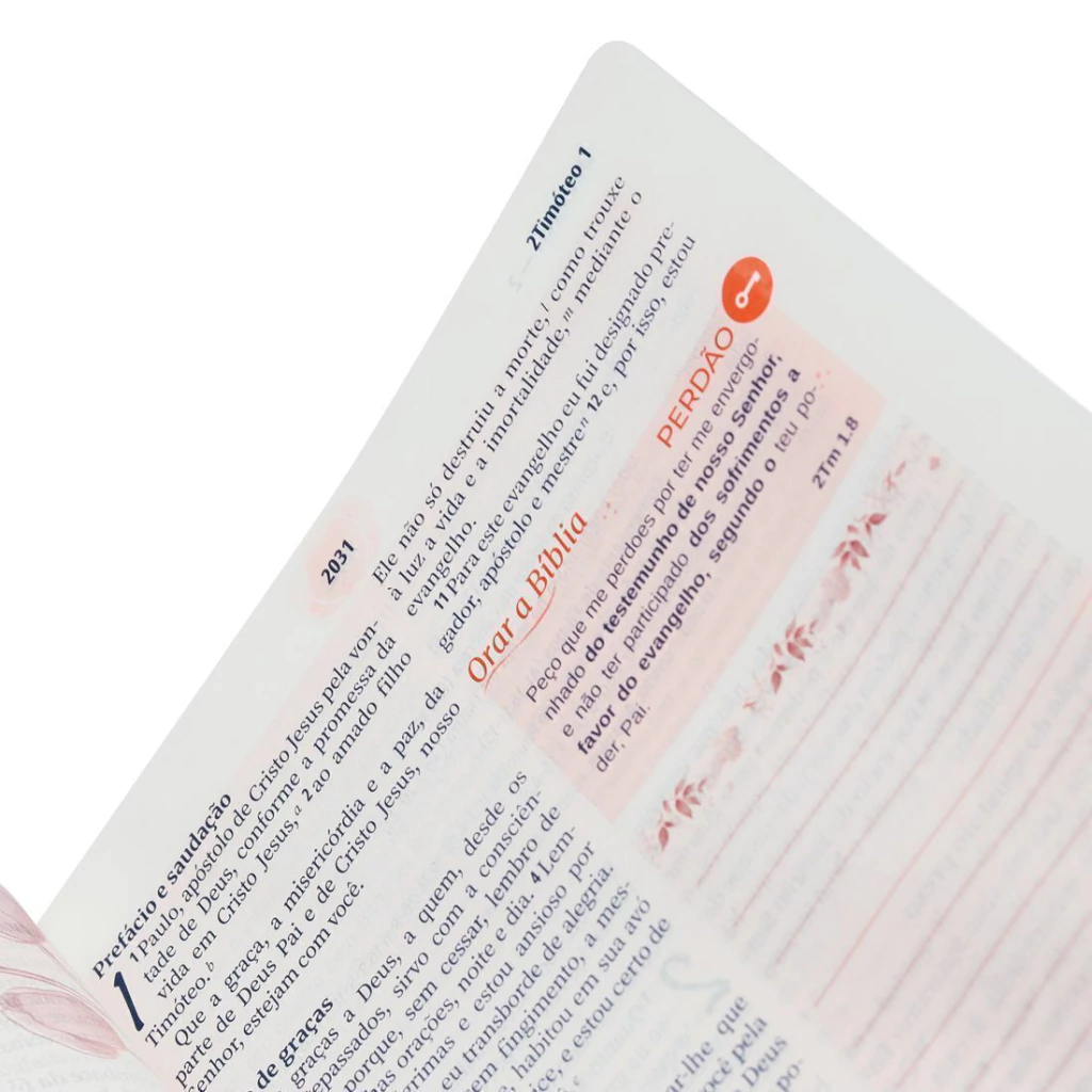 Além disso, a Bíblia oferece um espaço para anotações e ilustrações, permitindo que você personalize sua experiência de leitura e reflexão.