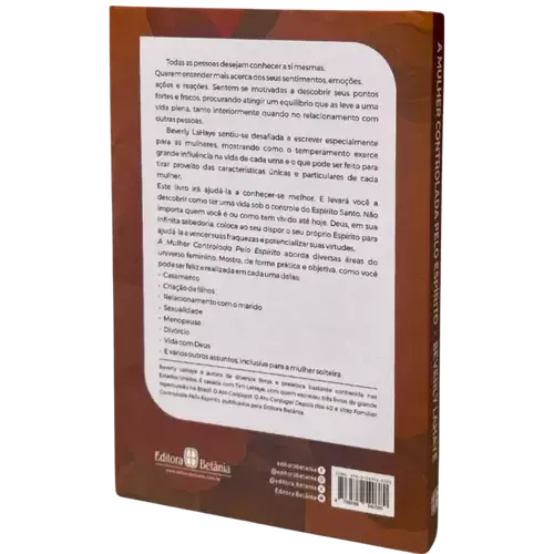 A Mulher Controlada Pelo Espírito aborda diversas áreas do universo feminino. Mostra, de forma prática e objetiva, como você pode ser feliz e realizado em cada uma delas: