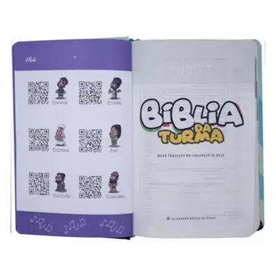 A Bíblia da Turma da Bíblia é uma edição temática especial criada pela Sociedade Bíblica do Brasil em parceria com a Turma da Bíblia. Com ilustrações divertidas, mapas mentais dos livros e textos coloridos, ela torna a leitura bíblica mais acessível e envolvente. O grande destaque é um encarte com mais de 80 músicas sobre personagens bíblicos como Abraão, Arão, Adão e muitos outros — todas acessíveis via QR Code em três idiomas (português, espanhol e inglês). Outros diferenciais incluem: Letras em caixa alta Vocabulário e visão geral da Bíblia Guia dos principais personagens e temas Plano de leitura cronológica Capa dura ilustrada e miolo totalmente colorido Uma forma alegre e criativa de mergulhar na Palavra de Deus!