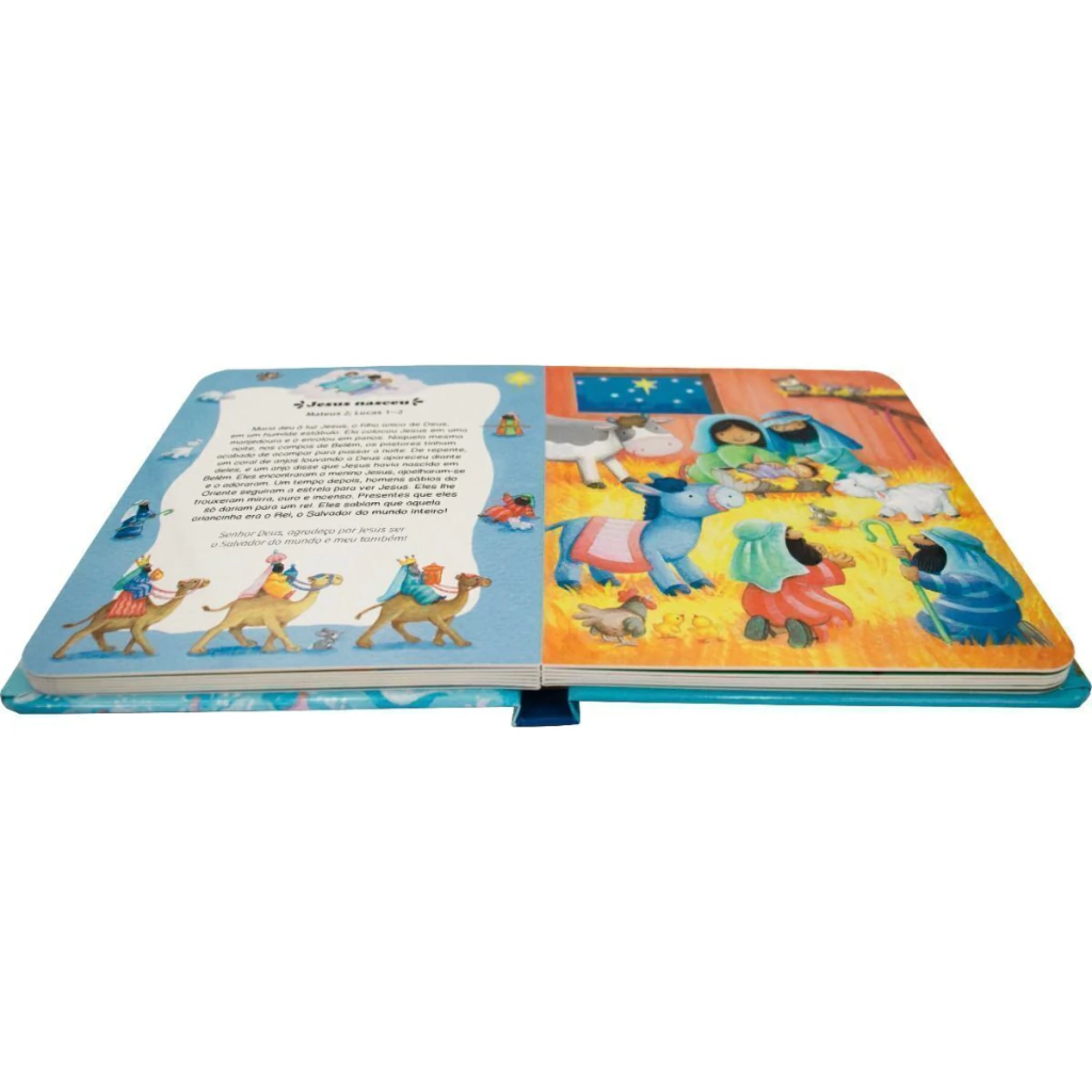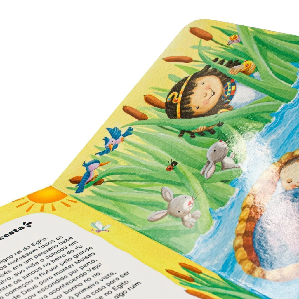 Nesta publicação estão selecionadas histórias do Antigo e Novo Testamentos. Adão e Eva, Noé, Abraão e Sara, Moisés e João são alguns personagens apresentados ao público infantil. Para completar a seleção, a obra narra o nascimento e infância de Jesus, seus ensinamentos e milagres. Tem textos curtos e objetivos, além de ilustrações bem coloridas.
