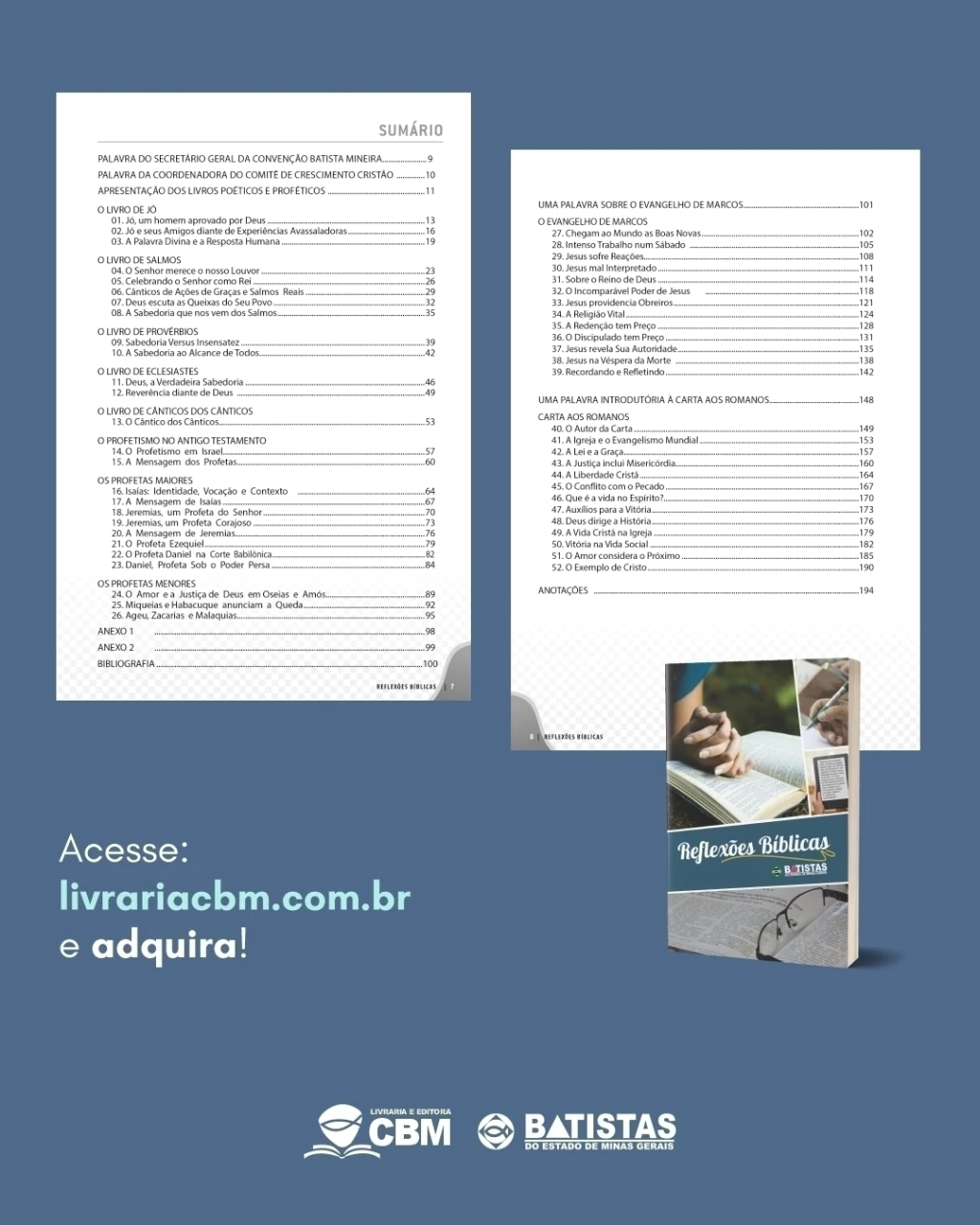 Para tanto, amados irmãos e irmãs, os 52 estudos propostos nos livros poéticos e proféticos, Marcos e Romanos são uma ferramenta para busca de uma vida mais centrada na vontade de Deus.